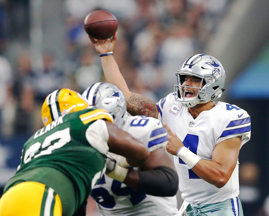 3. Dak Prescott did everything he could. He played an incredible first half, throwing three touchdown passes. He had the go-ahead score with 1:13 remaining. Unfortunately, against Aaron Rodgers that's rarely enough. Prescott finished 24 of 35 for 223 yards, three touchdowns and an interception that was clearly not his fault. Terrance Williams let a catchable ball go through his hands and right to Damarious Randall for a 21-yard defensive touchdown, putting Green Bay up 28-24 with 9:56 remaining.